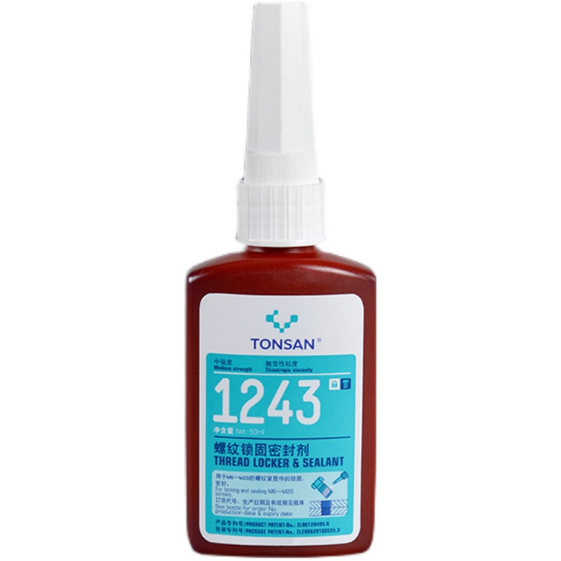 天山可賽新1243中高強(qiáng)度,觸變性粘度,可在輕油表面使用,用于M6~M20的螺紋緊固件的鎖固、密封,可用普通工具拆卸。